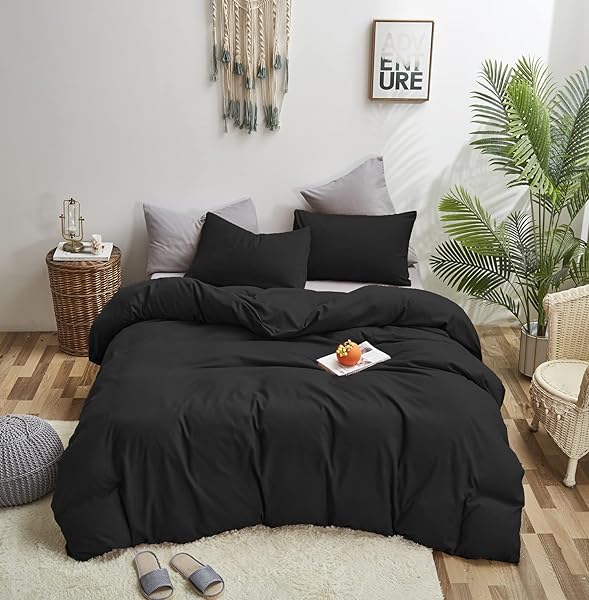 KAREVER Black Comforter Set Cal King Soft Durable Lightweight Solid Black Bedding Quilt for Men and Women Breathable True Black Bed Set