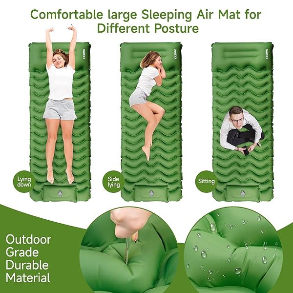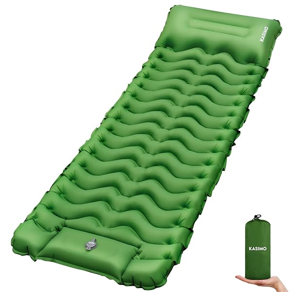 - KASIMO Camping Sleeping Pad, Ultralight Camping Mat with Pillow Built-in Foot Pump Inflatable Sleeping Pads Compact for Camping Backpacking Hiking Traveling Tents with reliable performance and quality- Innovation DesignDo You Want to sleep comfortably anywhere? KASIMO camping sleeping pad is made special with body mapping technology. Also the camping pad is designed with buttons on the side, you can easily connect TWO pads to create a double bed, making a wider space for more comf