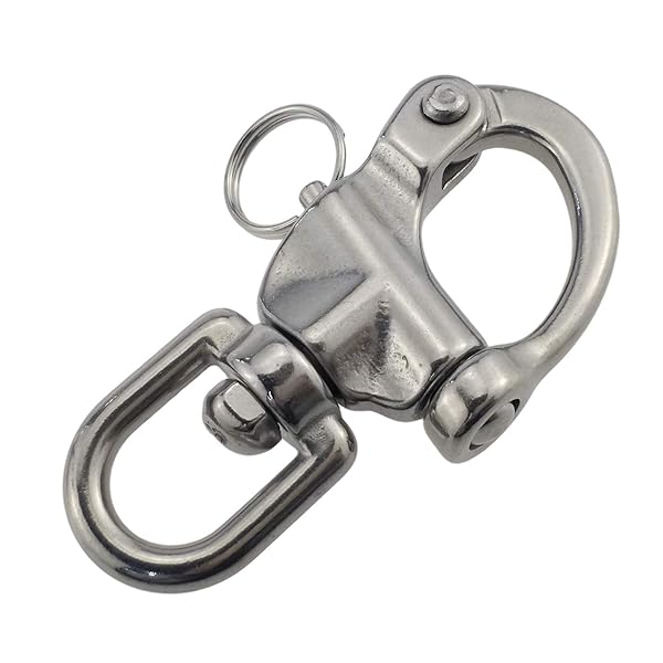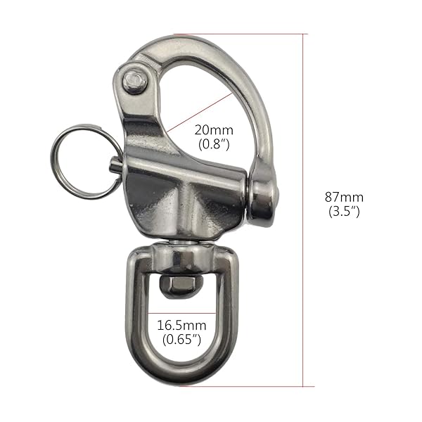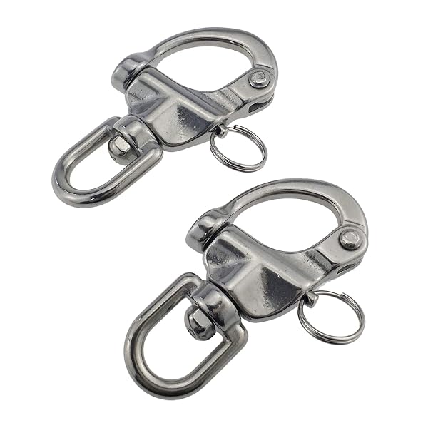 - keehui Pair 3-1/2inches Swivel Eye Snap Shackle Quick Release Bail Rigging Sailing Boat Marine 316 Stainless Steel for Sailboat Spinnaker Halyard offers reliable performance and quality- Material:snap shackles are made with strong, durable, and corrosion-resistant 316SS to reduce wear and corrosion- Swivel bail allows for connection with dynamically moving parts, like spinnaker halyards- Quick release shackles bail rigging for sailboat