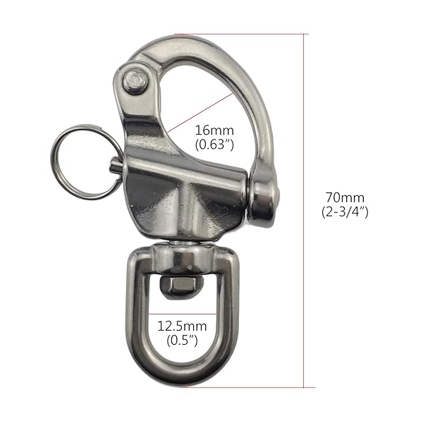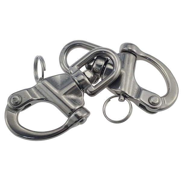 - keehui Pair 2-3/4inches Swivel Eye Snap Shackle Quick Release Bail Rigging Sailing Boat Marine 316 Stainless Steel for Sailboat Spinnaker Halyard offers reliable performance and quality- Material:snap shackles are made with strong, durable, and corrosion-resistant 316SS to reduce wear and corrosion- Swivel bail allows for connection with dynamically moving parts, like spinnaker halyards- Quick release shackles bail rigging for sailboat
