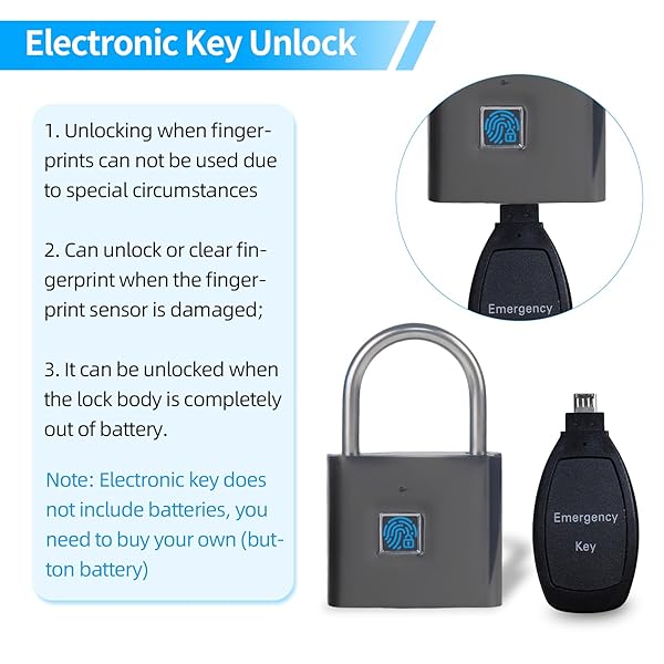 - KENRONE Fingerprint Padlock with Emergency Key, IP66 Waterproof and Rustproof, Outdoor Indoor Universal Smart Lock for Warehouses, Gym, Schools, Homes, Office Cabinets offers reliable performance and quality- Emergency UnlockingCompared with other fingerprint padlocks of the same type, our fingerprint padlock adds an electronic key emergency unlock function. It allows you to perform emergency unlocking in some special situations (e.g. finger injury)