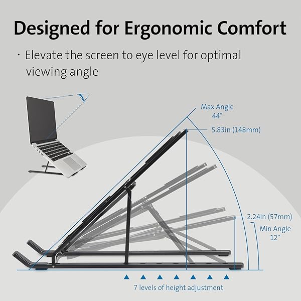 - Kensington Portable Laptop Stand, Collapsible Aluminum Laptop Riser, Height Adjustable Laptop Cooling Stand for Up to 16", Lightweight 0.53lbs Stand for MacBook Air/Pro, Dell XPS, Lenovo, HP, K50406WW with reliable performance and quality- Solid Aluminum Construction: made with strong, lightweight aluminum, a recyclable and sustainable material- Designed for Ergonomic Comfort, allowing users to elevate the screen to eye level for the optimum viewing angle- Collapsibl