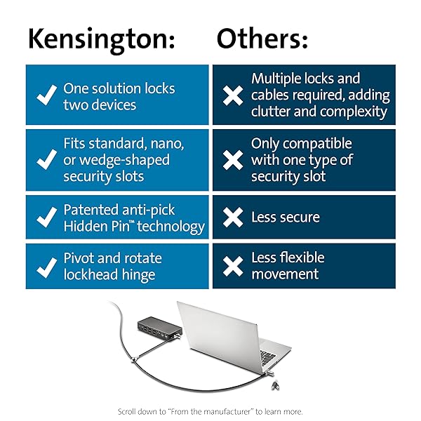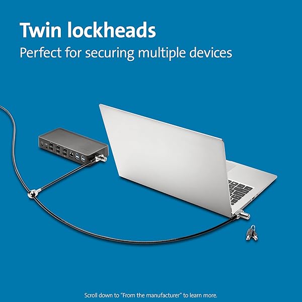 * Kensington Universal 3-in-1 Keyed Cable Lock - Twin Lockheads for Laptops & Other Devices (K63380WW): now you can lock two devices with a single solution * The Universal 3-in-1 Keyed Cable Lock * Twin Lockheads fits standard * Nano * And wedge-shaped security slots