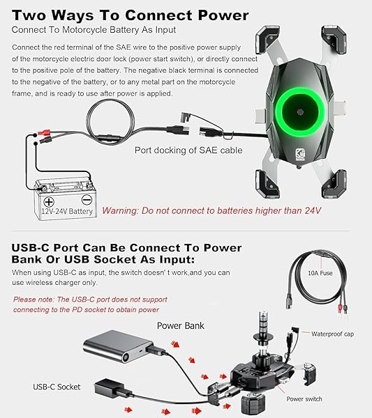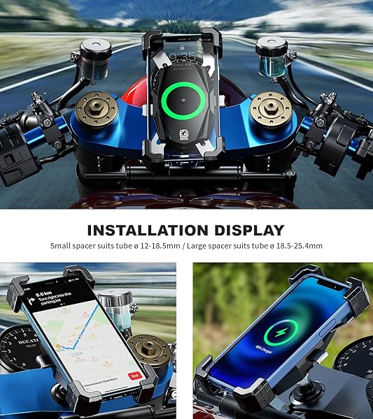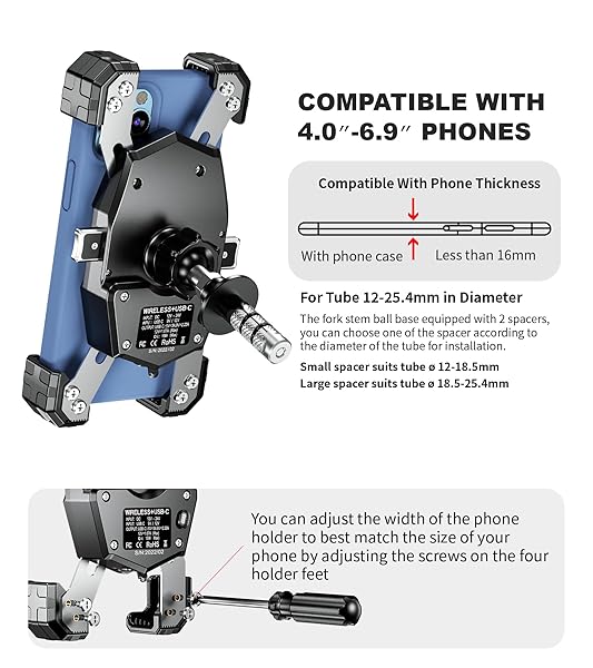 - Kewig Motorcycle Fork Stem Phone Mount with Qi 15W Wireless Charger & USB C 20W Fast Charging Port, One-Push Automatically Lock & Quick Release Waterproof Handlebar Phone Holder for 4.0-6.9" Phone with reliable performance and quality- Qi Wireless Charger & USB C Port Charging: KEWIG motorcycle phone mount wireless charger output 15W max, compatible with Qi 15W, 10W, 7.5W, 5W wireless charging modes on the market, USB C port output 20W max, USB C port can be connect to power bank