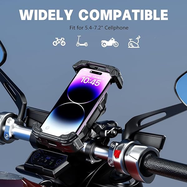 - Kewig Motorcycle Phone Mount Holder with Vibration Dampener & Secure Lock, Anti-Shake Handlebar Cellphone Mount for Moto Bike Scooter ATV, Adjustable Phone Mount Fit 5.4-7.2'' Phone with reliable performance and quality- Sturdy & Secure: The motorcycle phone mount main body made of PA66+GF high-strength material, built-in 304 stainless steel telescopic rods, Equipped with vibration dampener, can effectively mitigate the vibration caused by bumpy roads, Adopts aluminum alloy handle