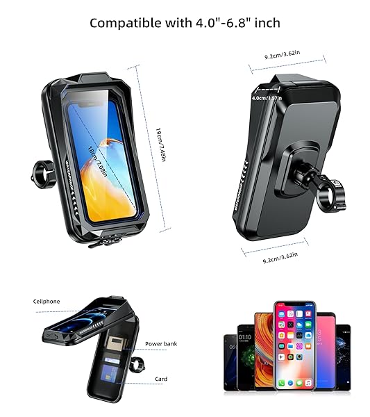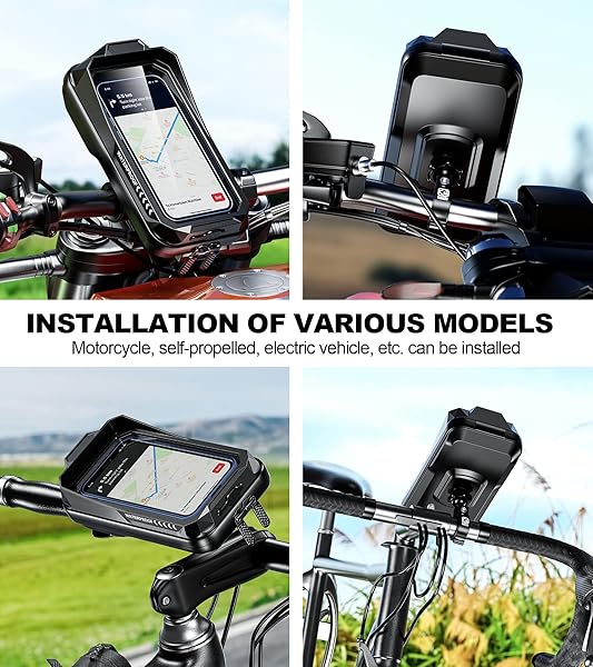 - Kewig Bike Phone Mount Waterproof, Bicycle Phone Mount Holder Pouch with Sun Visor & Touch-Screen, Handlebar Phone Mount with 360 Rotation Bike Phone Holder Suitable for 4.0'' - 6.7'' Cellphones with reliable performance and quality- IP66 Waterproof: The motorcycle phone mount built-in with waterproof silicone and double waterproof zippers, providing IP66 waterproof performance, fully enclosed design that can perfectly protect your phone in rainy days while riding, The motorcycle