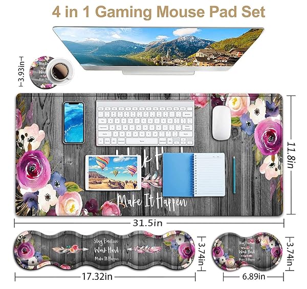 - Keyboard Mouse Pad Set,Extended Gaming Mouse Pad + Memory Foam Keyboard Wrist Rest Support, Psalm 46-10 Blue Glitter Office Desk Mat Writing Pad Easy Typing Pain Relief,XXL Large Mousepad Desk Mat with reliable performance and quality- Super Good Deal SetErgonomic mouse pad includes desk pad (31.5x11.8inch), keyboard wrist rest(17.3x3.74inch), mouse wrist rest(3.74x6.9inch), cup coaster(3.9x3.9inch).No need to buy separately. This desk pad for keyboard and mouse, is large enough t