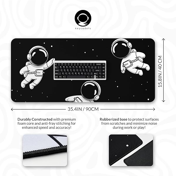 - keycadets Gravity Gaming Mouse Pad, Large Desk Pad for Keyboard and Mouse, Non-Slip Mousepad Gaming Desk Mat with Foam Core, Anti-Fray Lock Stitching and Low Friction Cloth Surface (35.4 x 15.8) offers reliable performance and quality- ELEVATE YOUR GAME with the Gravity Extra Large Mouse Pad for desk. The huge surface area of this keycadets gaming mousepad lets you cover big distances in virtual worlds with large, sweeping arcs