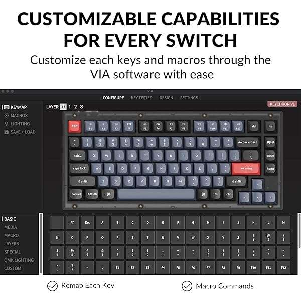 * Keychron V1 Wired Custom Mechanical Keyboard, 75% Layout QMK/VIA Programmable Macro with Hot-swappable Keychron K Pro Brown Switch Compatible with Mac Windows Linux (Frosted Black - Translucent): 82 keys mechanical keyboard: the v1 is a fully customizable mechanical keyboard ready for any situation * Its a great option to introduce you to the custom keyboard world while every component can be easily assembled * With its compact 75% layout * Acoustic silicone pad * The V1 is designed for ultra