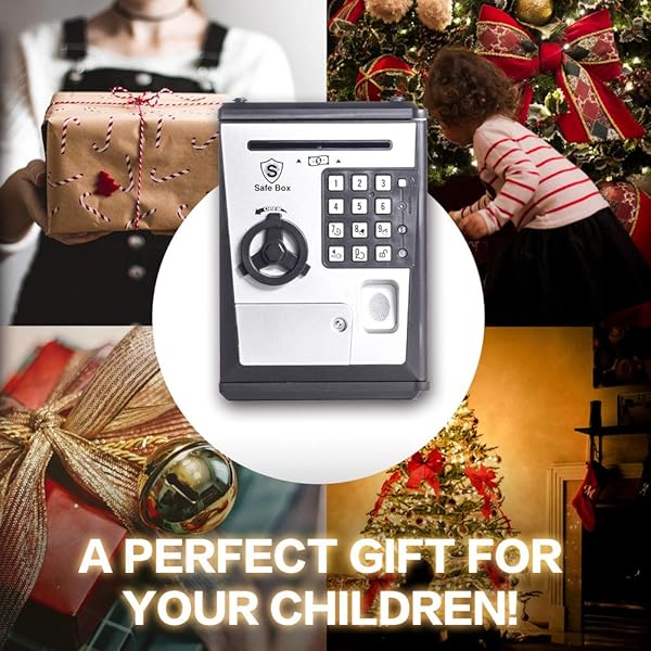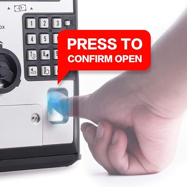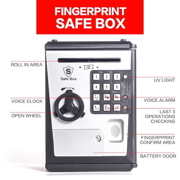 - Toy Piggy Bank Safe Box Fingerprint ATM Bank ATM Machine Money Coin Savings Bank for Kids offers reliable performance and quality- Password and pretend fingerprint, double security- Motorized bill feeder to deposit paper money- Voice Alarm Clock- History records for last three operations