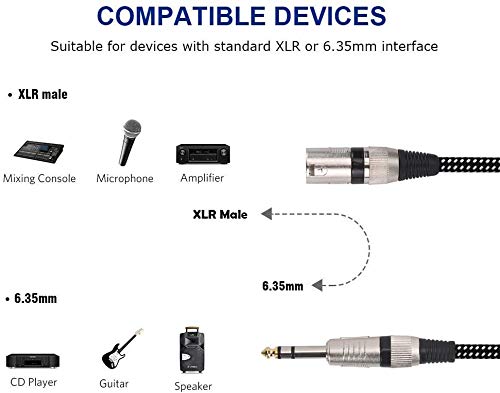 - KINXIYU XLR Male to 1/4 Inch TRS Cables 10 FT/2Pack, Nylong Braided XLR 3 Pin Male to Quarter inch 6.35mm TRS Balanced Interconnect Wire Mic Cord (Pure Copper Conductors) offers reliable performance and quality- Made of high purity 22awg ofc conductor: We use good quality oxygen free copper with shielding ensuring high fidelity sound quality and providing maximum's conductivity and durability. It's especially great for studio or live performances