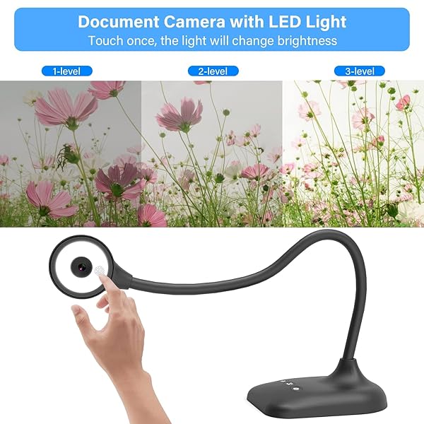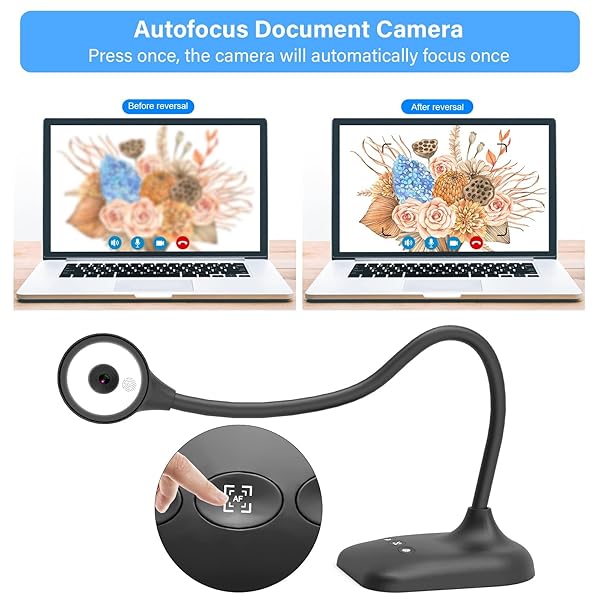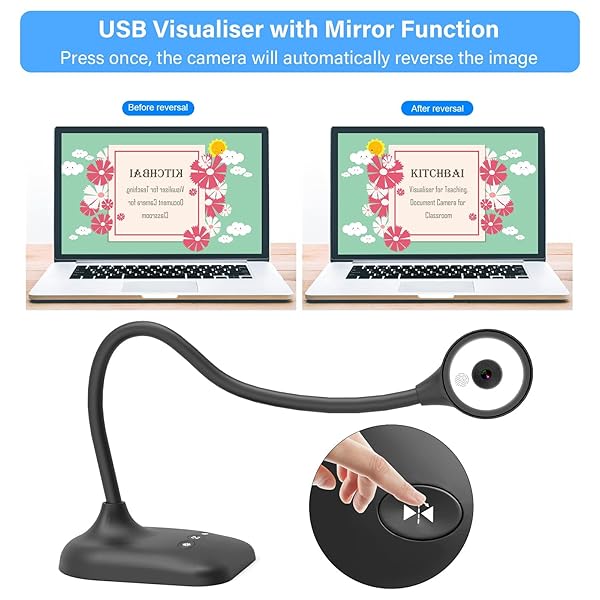 - kitchbai Document Camera for Teachers, Webcam and Overhead Camera for Classroom with Mic, LED Lights, Image Invert, Fold for Mac OS, Windows, Zoom, OBS Work with Distance Learning/Teaching, Live Demo with reliable performance and quality- 3-in-1 USB document camera, Webcam and Visualiser: Equipped with HD sensor, maximum resolution up to 25921944P. Hose structure design, can be adjusted at any angle. It can be used for video chat and web teaching, or flip the camera for live prese