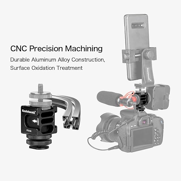 - koolehaoda Aluminium Cold Shoe Mount Adapter Video Accessory Quadruple Cold Shoe Bracket for Lights, LED Monitors, Microphones, Audio Recorder & Studio Flash Video Camera offers reliable performance and quality- Made of high quality aluminum alloy, CNC precision machining, Surface anode under oxidation treatment, which makes its surface very smooth, eel comfortable to touch in operation