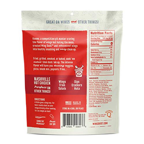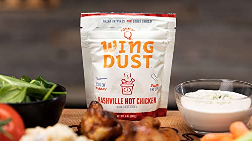 * Kosmos Q Nashville Hot Chicken Seasoning Wing Dust, Savory & Spicy Chicken Seasoning For Wings, Fries, Popcorn, Dips, Crackers & More, Dry Rub Dust With Classic Nashville Heat And Buttery Kick, 5 Oz: nashville hot flavor that hits different: a classic southern kick with a buttery twistthis nashville hot seasoning blends cayenne * Garlic * Parmesan cheese * And paprika extract for a crave-worthy combo of heat and savory depth * Its smoky