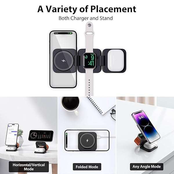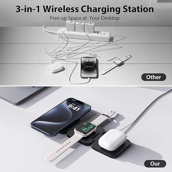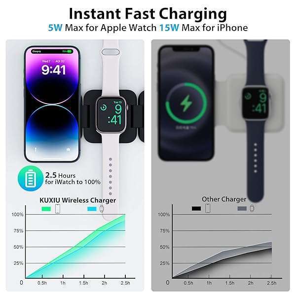 - KU XIU Fast Wireless Charger, Magnetic Foldable 3 in 1 Charging Station for iPhone 17/16/15/14/13/12/Pro/Plus/Pro Max, 5W Portable Charger for Apple Watch10/9/8/7/6/5/4/3/SE, for Airpods3/2/Pro-Bla...- Upgraded 3 in 1 Wireless Charger: KU XIU 3 in 1 wireless charging station combines the advantages of all other wireless charger devices, from flat-lay to dock charging, and with the innovative desi...