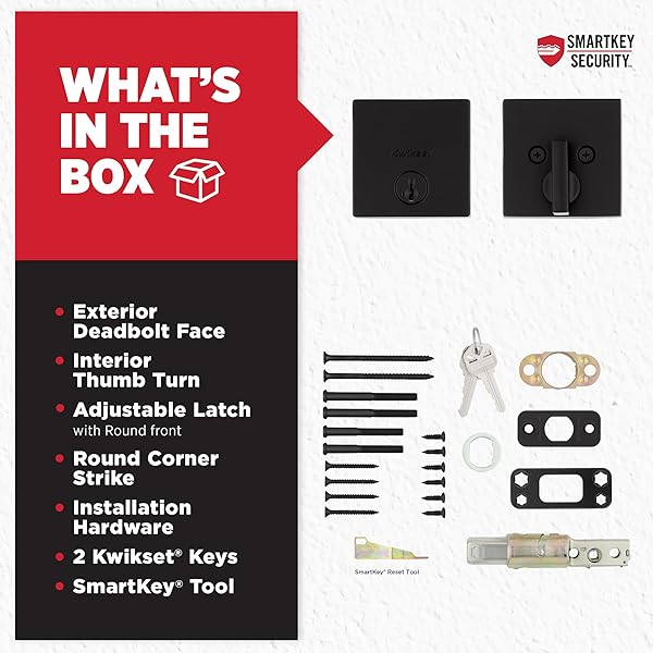 * Kwikset Downtown Deadbolt Lock, Matte Black Square Exterior Keyed Front Entry Door, Pick Resistant SmartKey Rekey Security, Single Cylinder Dead Bolt, with Microban Protection: step up to designer styles and superior security with kwikset signature series products * This single cylinder deadbolt is operated by a key on the outside or a thumb turn on the inside * The rich tones of Matte Black add the finishing touch to this product * The Matte Black finish provides a rich and warm complement to