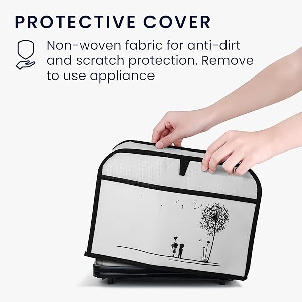 - kwmobile Cover Compatible with 2 Slice Toaster - Cover for Toaster - Dandelion Love Black/White with reliable performance and quality- COMPATIBILITY: Fits most standard 2 slice toasters. Please check the dimensions.- PROTECTS: The polypropylene nonwoven fabric cover protects your toasting machine against scratches and knocks- DUSTPROOF: Protects your toaster against dust and dirt, keeping it nice and clean when it's not being used- SIZE: The inner size of this