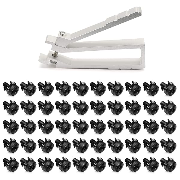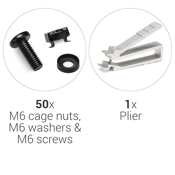 * kwmobile 50 Pack M6 Cage Nuts, Bolts and Washers Kit - Cage Nuts Set With Tool for Installation Extraction - For Patch Panel Rack Mount - Black: mount your 10 inch and 19 inch network cabinet racks quickly and easily with this set of 50 m6 cage nuts * Bolts and washers * They are suitable for attaching patch panels and switches to network cabinets * STRONG & STABLE Made of durable steel to serve you with equipping server cabinet racks for years to come * LARGE QUANTITY With this 50 pack