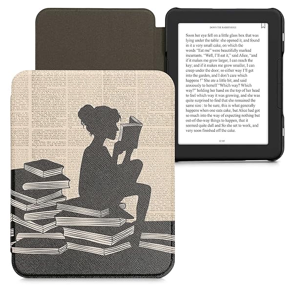 * kwmobile Case Compatible with Barnes & Noble Nook Glowlight 4 / 4e Case - eReader Cover - Girl and Books Black/Beige: compatibility: compatible with barnes & noble nook glowlight 4 / 4e * LEATHER LOOK: eBook protector is made of durable and resistant synthetic leather for a lightweight * Slim look * MAGNETIC CLOSURE: Strong magnets snap the case shut to keep eReader firmly in place and protected * DOUBLE SIDED: With this case