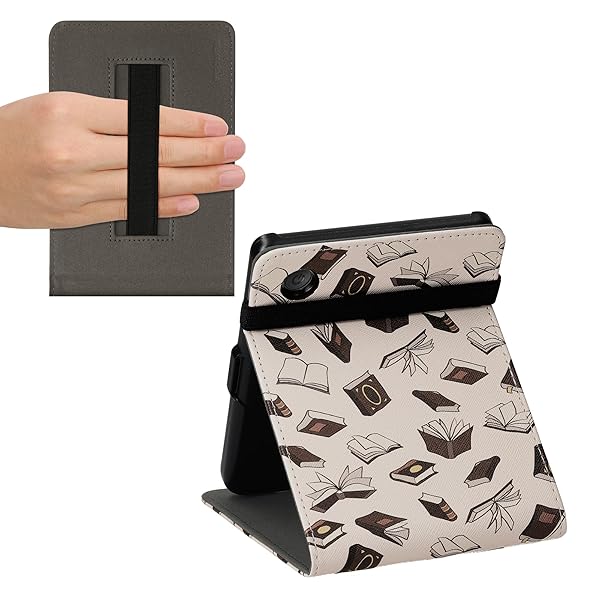 * kwmobile Cover Compatible with Kobo Clara 2E / Tolino Shine 4 Case - Stand + Strap - Books and Pages Beige/Brown/Gold: compatibility: compatible with kobo clara 2e / tolino shine 4 * LEATHER LOOK: Flip cover is made of durable faux leather featuring books and pages design for an elegant look * FULL PROTECTION: Case covers all four corners and both sides of your e-book to protect against shocks * Falls * Drops