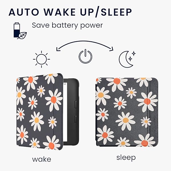 * kwmobile Case Compatible with Kobo Libra 2 Case - eReader Cover - Summer Daisy Blue/White/Yellow: compatibility: compatible with kobo libra 2 * LEATHER LOOK: eBook protector is made of durable and resistant synthetic leather for a lightweight * Slim look * MAGNETIC CLOSURE: Strong magnets snap the case shut to keep eReader firmly in place and protected * DOUBLE SIDED: With this case