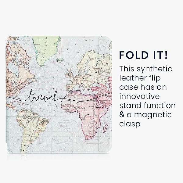 kwmobile Origami Case Compatible with Kobo Libra 2 - Case Slim Premium PU Leather Cover with Stand - Travel Black/Multicolor