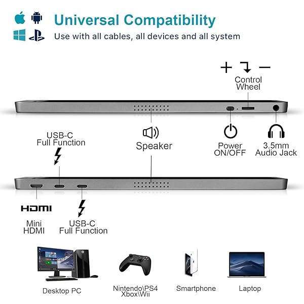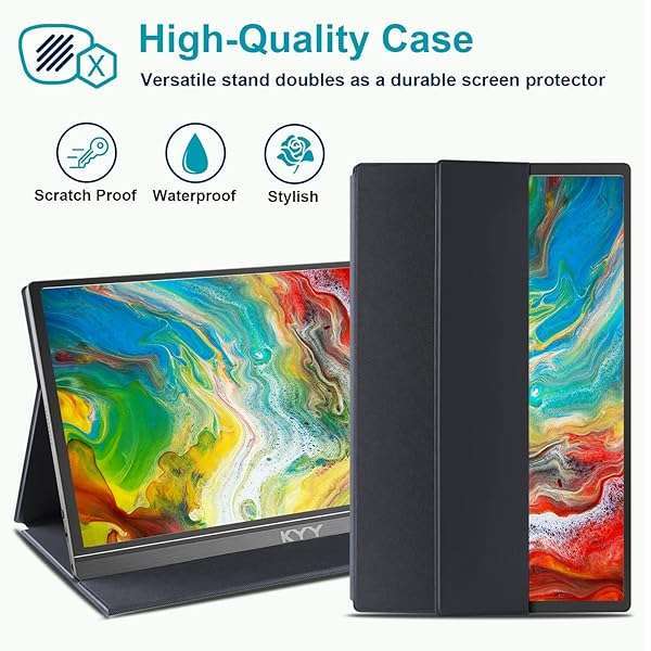 - KYY Portable Monitor 15.6inch 1080P FHD USB-C, HDMI Computer Display HDR IPS Gaming Monitor w/Premium Smart Cover & Screen Protector, Speakers, for Laptop PC MAC Phone PS4 Xbox Switch provides reli...- [ FHD 1080P PORTABLE MONITOR ]: KYY using a 15.6''(8.8"x14.2") advanced IPS screen with 178 wide viewing angle, Delivers 1920*1080 breathtaking viewing quality and HDR technology, KYY portable gami...