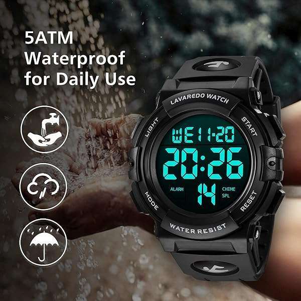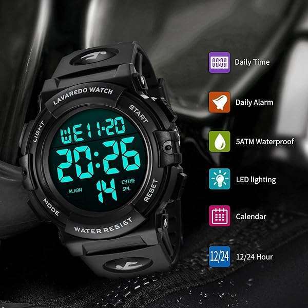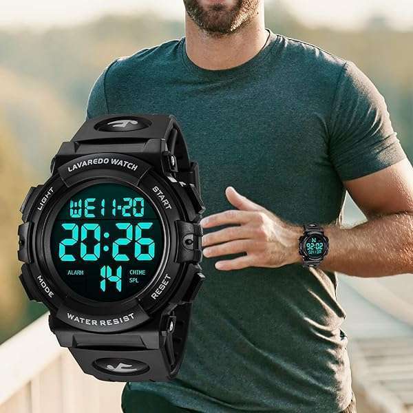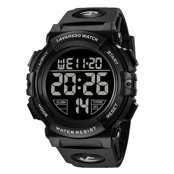 - L LAVAREDO Mens Digital Watch Sports Military Watches Waterproof Outdoor Chronograph Wrist Watches for Men with LED Back Ligh/Alarm/Date: reliable performance and quality- Multifunctional: Digital display, LED Back light, Date, Alarm, Shock- Simple and Sporty Design: Sporty dial, stylish look. Large dial and- High Quality Silicone Band: Pin buckle, easily to adjust the- Waterproof: Daily life level waterproof, only supports a small amount