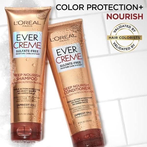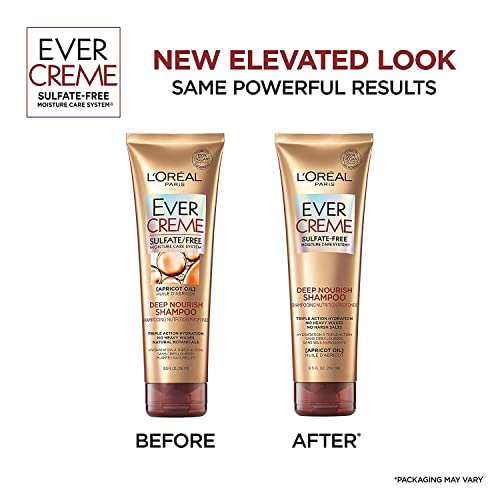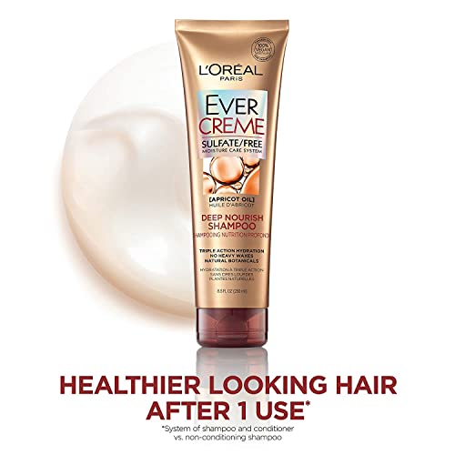 * L'Oreal Paris EverCreme Sulfate Free Deep Nourish Shampoo, 8.5 Ounce (Pack of 2): loral paris evercreme deep nourish shampoo with apricot oil replenishes dry * Brittle hair with vital nourishment and deep moisture for silky-soft texture and healthy shine without weigh down * Hair looks healthier after the 1st use * Our shampoo for dry hair is especially gentle on color * There are no harsh sulfates