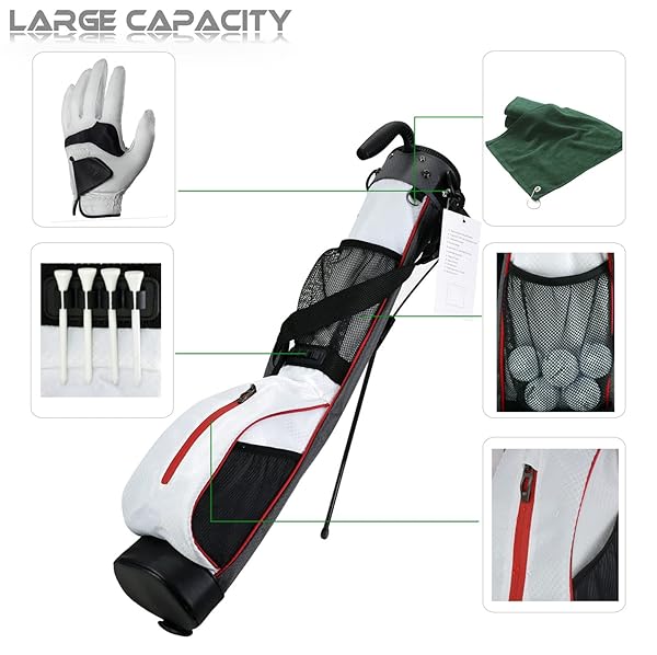 * LAISUNTIM Golf Stand Bag Retractable, Portable Golf Bag with 2 Way Divider and Dual Straps, Waterproof Wear-Resistant Durable Fabric Golf Bag for Women and Men (White): waterproof fabric this laisuntim golf bag is made of waterproof material * Exquisite workmanship * Wear-resistant and durable * And can effectively avoid liquid to permeate and better protect your clubs * REMOVABLE SHOULDER STRAP DESIGN The LAISUNTIM golf bag is equipped with a handle and a detachable shoulder strap