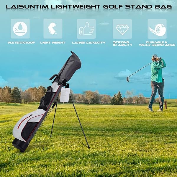 LAISUNTIM Golf Stand Bag - Portable, Waterproof, Durable with 2-Way Divider & Dual Straps for Men & Women (White)