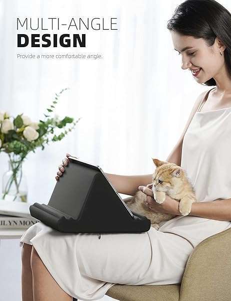 - Lamicall Tablet Pillow Holder Stand - Tablet Pillow Soft Pad Dock for Lap, Bed and Desk with Pocket & 4 Viewing Angles, for iPad Pro 13, 11, 12.9, Air, Mini, Kindle, iPhone, 4-13" Devices, Black pr...- 4 Adjustable AnglesThis multi angle tablet pillow stand has 4 adjustment angles, provides the best viewing angle in the bed, sofa or table, supporting both vertical and horizontal viewing.