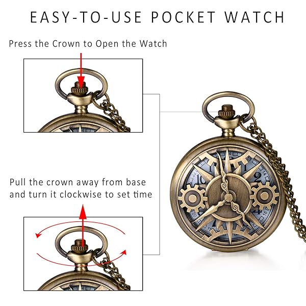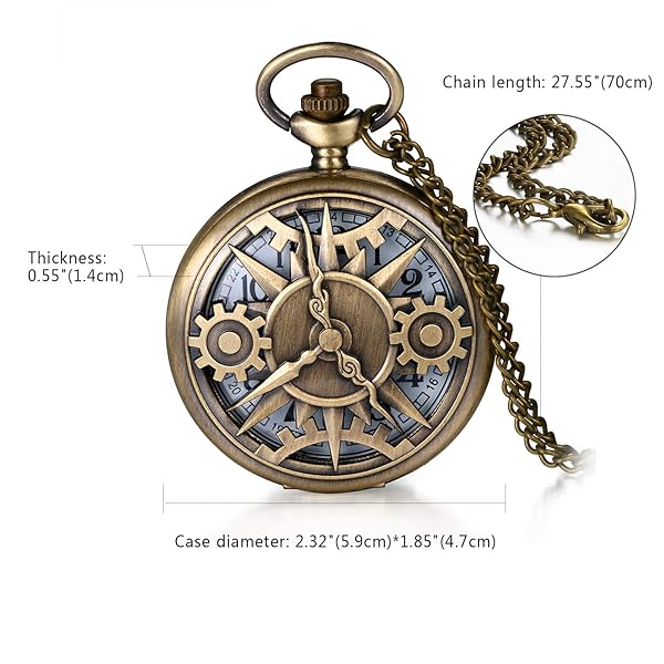 - Lancardo Men Vintage Pocket Watch : Half Hunter Bronze Quartz Movement Punk Fob Pocket Watch Large Arabic Markers with Chain Birthday offers reliable performance and quality- UNIQUE DESIGN: The case of the bronze pocket watch is hollow. An antique bronze case with gear patterns makes this watch look cool and unique. It is not only a watch for men but also a perfect decoration for cosplay