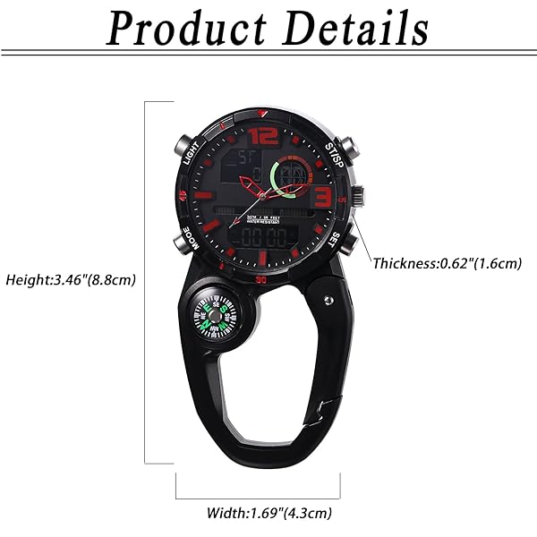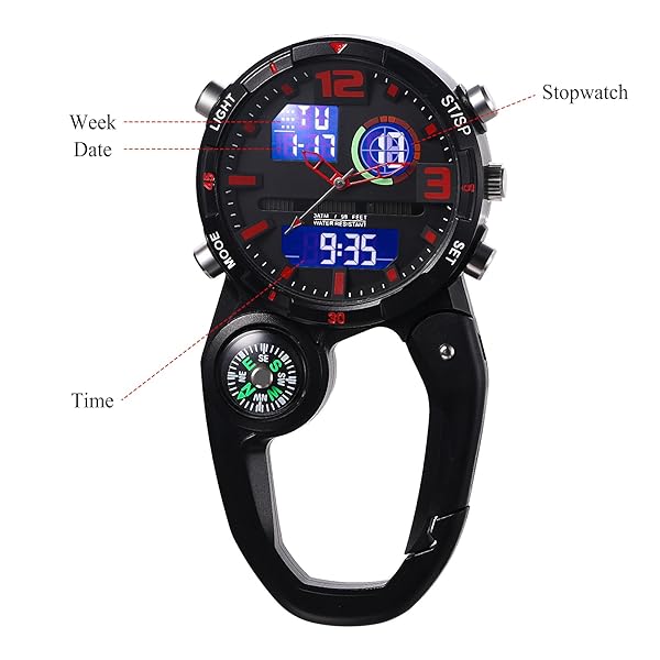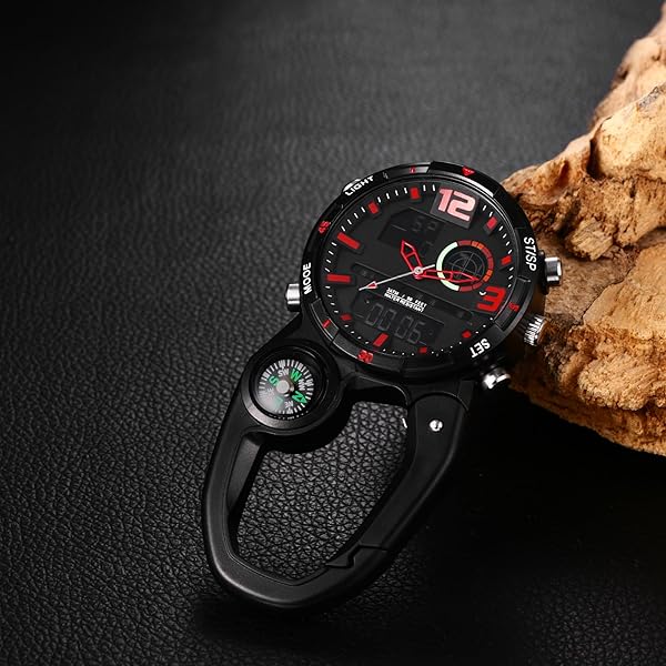 - Lancardo Clip on Carabiner Watch: Multi-Function Backpack Watch for Men Women Analog Digital Date LED Alarm Sport Watch Hiking Climbing with reliable performance and quality- Analog-Digital Display: This clip-on fob watch shows you the time in two ways to meet your different needs. It is easy to read even in a dark environment.- Cool Design: A black background with red numbers and watch hands forms a strong contrast. We use a plastic case instead of a metal case to reduce t