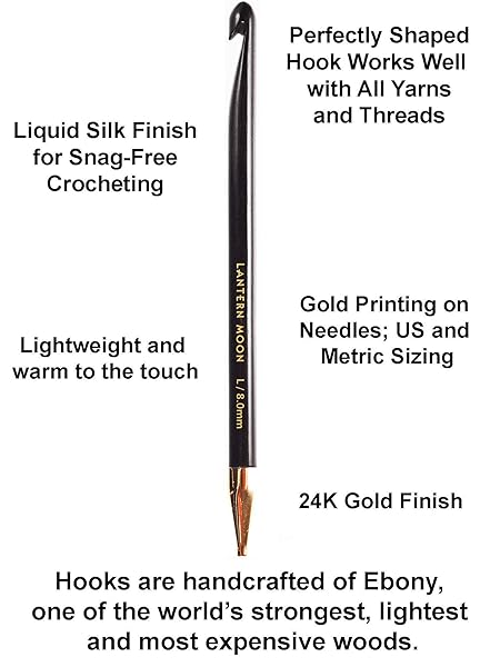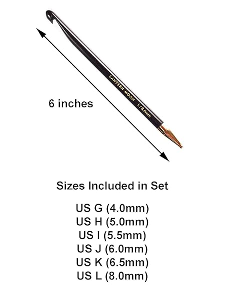 - Lantern Moon Bequest 6-Inch Tunisian Interchangeable Crochet Hook Set Handcrafted Ebony Sizes US G, H, I, J,K, L, Silk Case, 2 Cords, 2 End Caps, 1 Tighten Tool with Project Bag offers reliable performance and quality- Includes 1 Lantern Moon Bequest 6-Inch Tunisian Interchangeable Crochet Hook Set Handcrafted Ebony Sizes US G, H, I, J,K, L, Silk Case, 2 Cords, 2 End Caps, 1 Tighten Tool and 1 Craft Project Bag