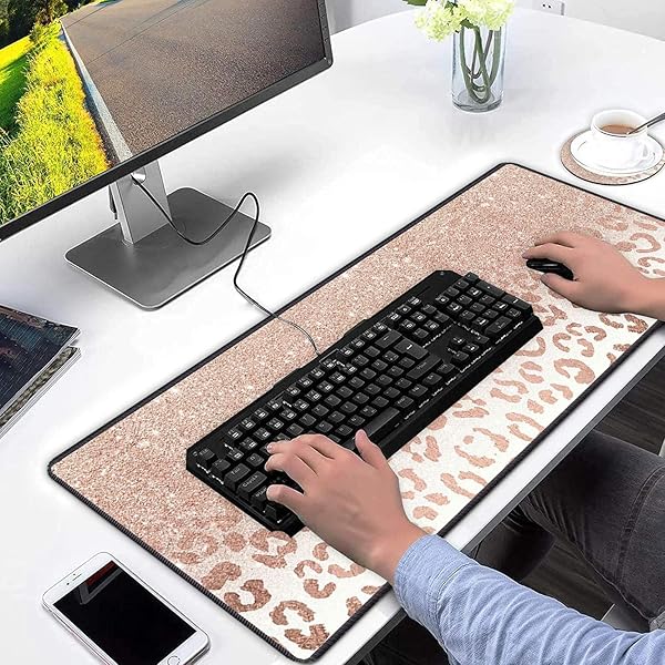 * Extended Mouse Pad Large Gaming Mouse Pad Computer Keyboard Mouse Mat Non-Slip Rubber Base for Game Players, Office, Study + Cup Coaster, Leopard Star Pattern: gaming mouse pad * The basis for professional work and gaming * The rear rubber coating ensures a stable hold even on smooth surfaces * The fabric surface on the front is water repellent and gives your workplace a personal touch with its individual motif * Features