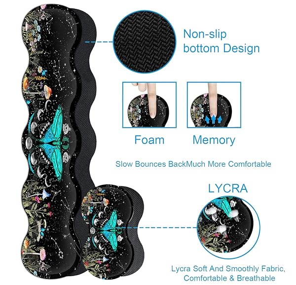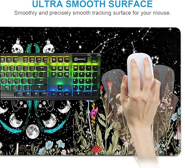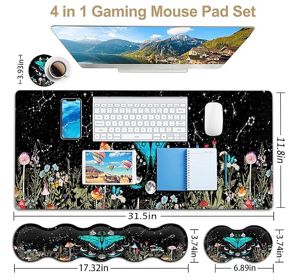 - Large Mouse Pad, Ergonomic Mouse Wrist Support + Keyboard Wrist Rest Set+ Extended Gaming Mouse Pad Moth Moon Phase Witchy Office Desk Mat Black Writing Mat Laptop Protector Accessories Desk Pad with reliable performance and quality- Super Good Deal SetErgonomic mouse pad includes desk pad (31.5x11.8inch), keyboard wrist rest(17.3x3.74inch), mouse wrist rest(3.74x6.9inch), cup coaster(3.9x3.9inch).No need to buy separately. This desk pad for keyboard and mouse, is large enough to