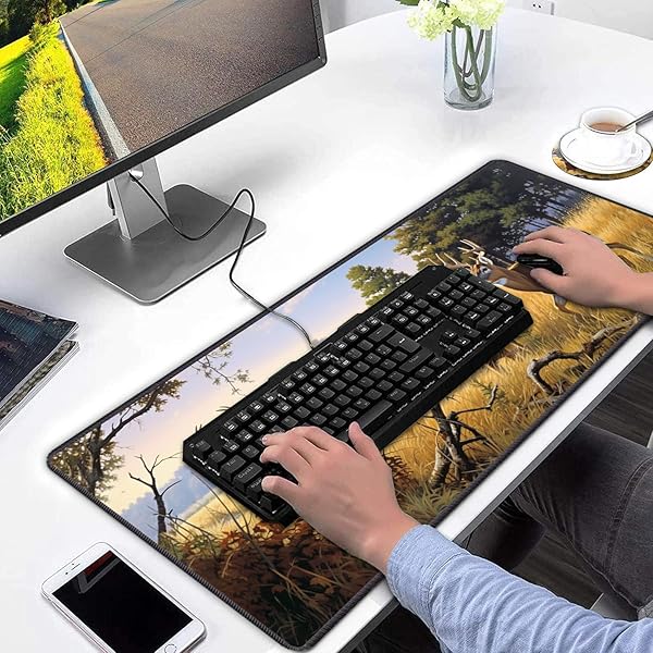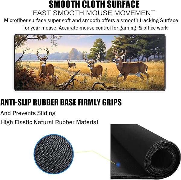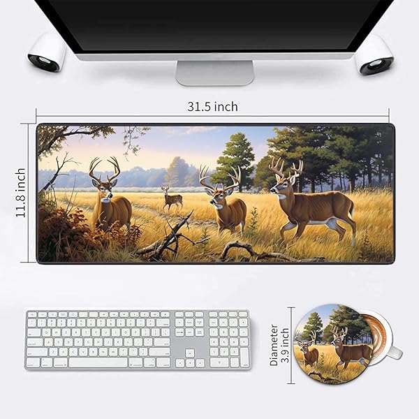 * Extended Mouse Pad Large Gaming Mouse Pad Computer Keyboard Mouse Mat Non-Slip Rubber Base for Game Players, Office, Study + Cup Coaster,Animal Deer: gaming mouse pad * The basis for professional work and gaming * The rear rubber coating ensures a stable hold even on smooth surfaces * The fabric surface on the front is water repellent and gives your workplace a personal touch with its individual motif * Features