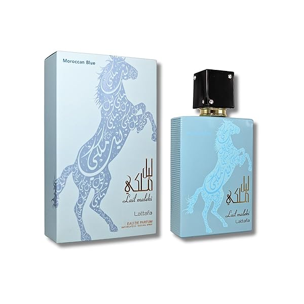 * Lattafa Lail Maleki Moroccan Blue Spicy, Citrusy, Woody, Oud Eau de Parfum Spray Long-Lasting Fragrance for Unisex, 3.4 Ounce / 100 ml: lattafa lail maleki moroccan blue eau de parfum for unisex 3.4ounce is a captivating blend of exotic spice and deep woods * It opens with a vibrant burst of aromatic spices * Zesty bergamot * And bright citrus * Immediately energizing the senses