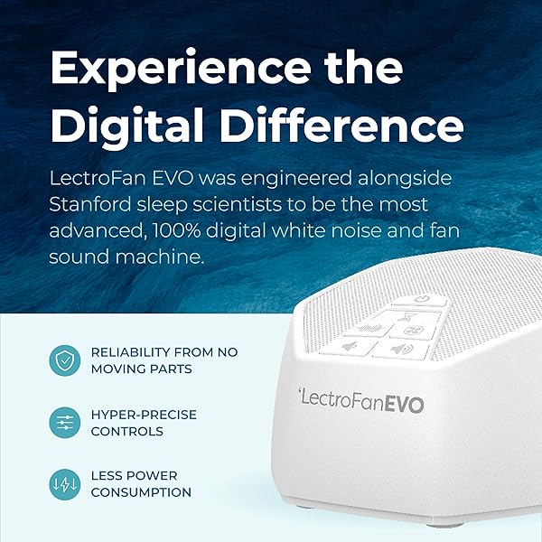 - Adaptive Sound Technologies LectroFan EVO White Noise Machine - Compact Sleep Sound Machine for Bedroom, Travel, Study & More - 22 Non-Looping Fan, Ocean Noise Variations - White offers reliable performance and quality- LectroFan EVO: This compact sleep sound machine from Adaptive Sound Technologies offers 22 non-looping (non-repeating) sounds, including fan sounds, white noise, and ocean sounds