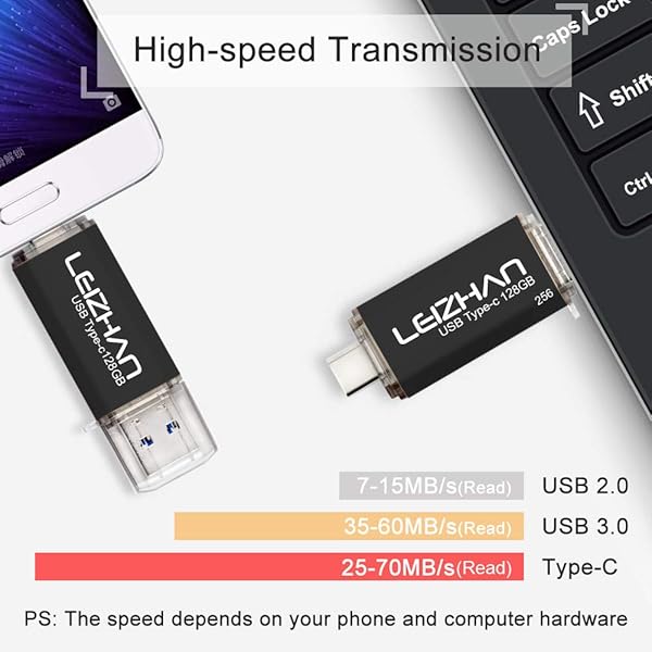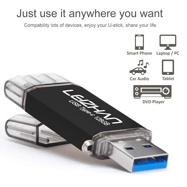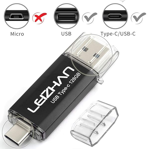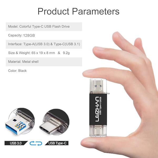- leizhan 128GB USB 3.0 Flash Drive Thumb Drives Jump Drive Storage Memory Stick Type-C/USB 2 in 1 -Black offers reliable performance and quality- Type-c Pen drive is 128GB storage capacity.Interface: USB 3.0 and Type-c (USB-A and USB-C )
