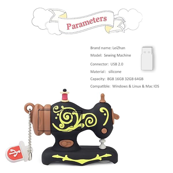 - leizhan 32GB Cute USB Flash Drive Embroidery Sewing Machine Design Pen Drive Data Storage Picture Stick Pendrive Memory Stick - Black offers reliable performance and quality- Cute USB Stick: adorable embroidery Sewing Machine design USB Flash Drive, comes with a little metal lanyard, so you can bring it as pendant on key-chain or backpack, funny and handful. The novelty pen drive easily distinguishable from traditional U disk, cheer up your working day