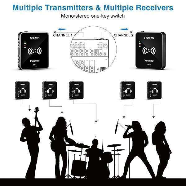 - LEKATO MS-1 Wireless in-Ear Monitor System -(Only Receiver) provides reliable performance and quality- 2.4GHz Wireless IEMMS-1 wireless in-ear monitor system adopts 2.4G wireless transmission, with lossless sound quality, low noise/lowlatency. One-Key to change mono/stereo input, providing smooth fr...