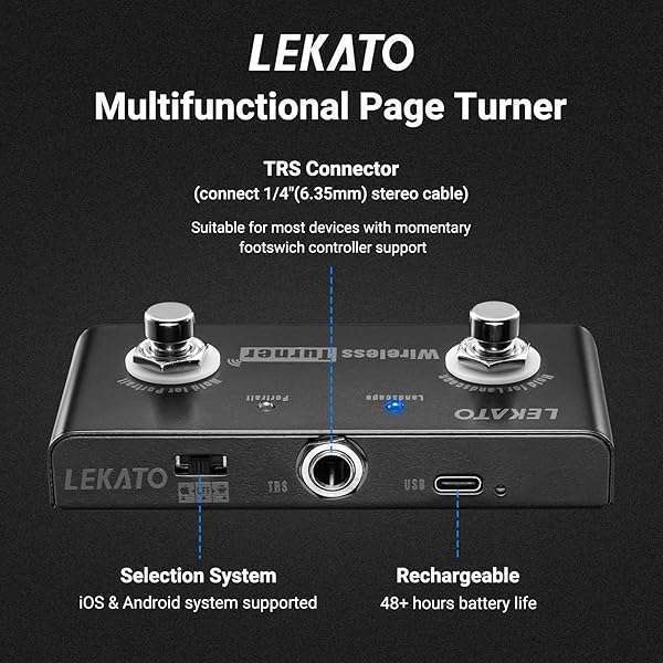 - LEKATO Wireless Page Turner Pedal Bluetooth Foot Pedal for Tablets Phone (Android & IOS system above version 13.4 support) - External Pedal for LEKATO Loop Pedal Tuner Switching Control offers reliable performance and quality- Free Your Hands : Using the wireless page turner pedal performers can easily complete the page turning step by simply stepping on the pedal while playing,it can make the process of playing and practicing music easier and smoother