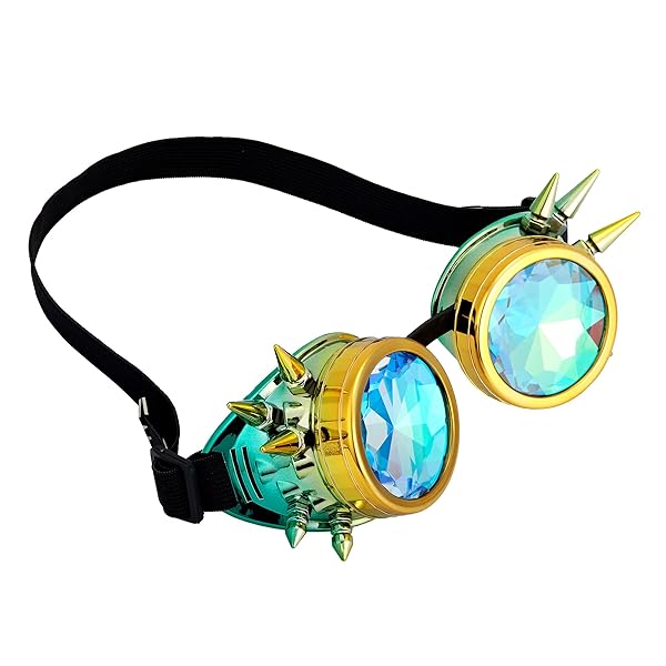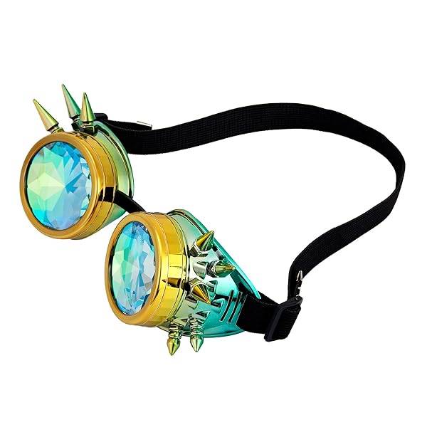 - Lelinta Kaleidoscope Goggles Steampunk Goggles Glasses Halloween Costume Accessories for Cosplay Party offers reliable performance and quality- Elastic headband helps the goggles stay in place for lasting protection- Application:Cosplay,photo prop,outdoor sports etc- Tough lens provides impact resistance- Material:glass+plastic+elastic band