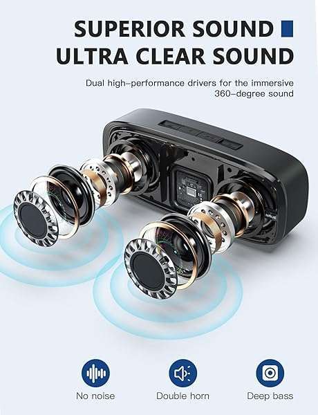 - LENRUE Bluetooth Speaker, Wireless Portable Speaker with Loud Stereo Sound, Rich Bass, 12-Hour Playtime, Built-in Mic. Perfect for iPhone, Samsung and More offers reliable performance and quality- Superior Sound Quality: The Bluetooth speaker with dual high-performance drivers and unique enhanced bass. The treble is clean and defined, the bass is powerful. You can enjoy the wonderful music, whether indoors or outdoors