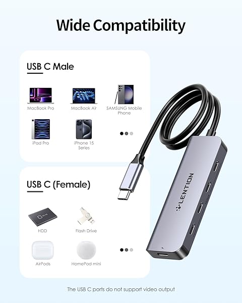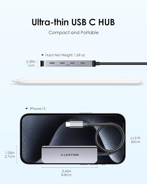 - LENTION 2FT Long Cable USB C Hub, Splitter with 4 * 10 Gbps USB C 3.2 Gen 2, 100W PD Charging, Compatible with 2025-2016 MacBook Pro, New Mac Air, iPhone15-16, More Type C Devices (CE31s, Space Gray) offers reliable performance and quality