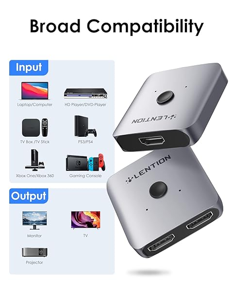 - LENTION HDMI Switch 4K@60Hz,Hdmi Splitter,Bi-Directional HDMI Switcher,3-HDMI Switch Adapter with LED Indicator,2 Input 1 Output HDMI AB Switch,Compatible Xbox PS5/4/3 TV Box Fire Stick Roku(S32) offers reliable performance and quality