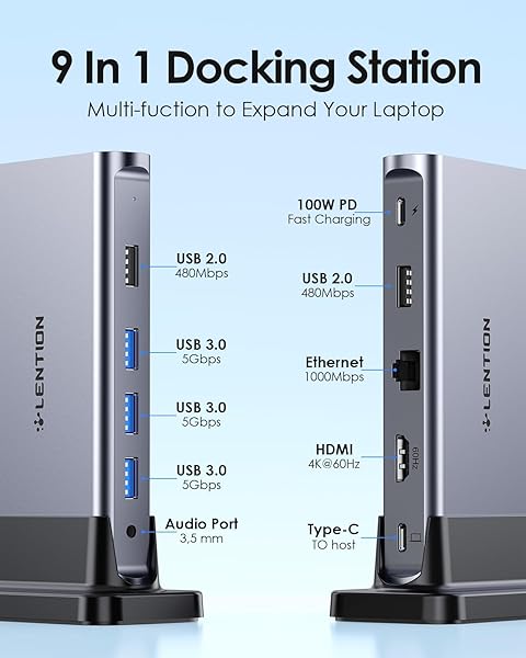 - LENTION USB C Docking with 4K@60Hz HDMI, USB 3.0/2.0, Gigabit Ethernet, 100W PD, Aux Adapter for 2025-2016 MacBook Pro/2025-2018 Mac Air/Surface/Steam Deck, More, Stable Driver Certified (Space Gray) offers reliable performance and quality