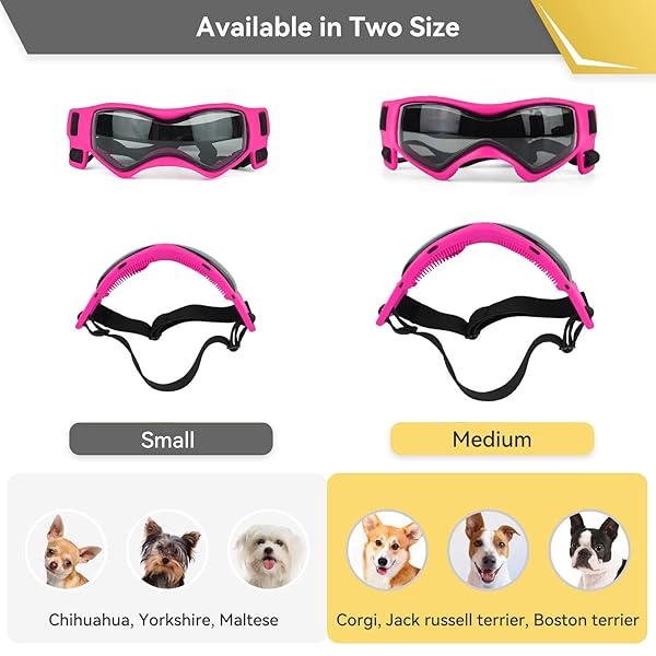 - LESYPET Small Dog Sunglasses Dog Goggles UV Wind Dust Protection Pet Sunglasses Eye Protection for Outdoor Walking Riding, Pink M offers reliable performance and quality- Small dog sunglasses for Chihuahua, Yorkshire Terrier, Shih Tzu, West Highland Terrier, Maltese, Bichon Frise, Poodle, Miniature Dachshund, etc- Nice and adorable look on dogs, the cool pink frame with a black one-piece PC lens, you can take a stylish photo of puppy anytime, anywhere